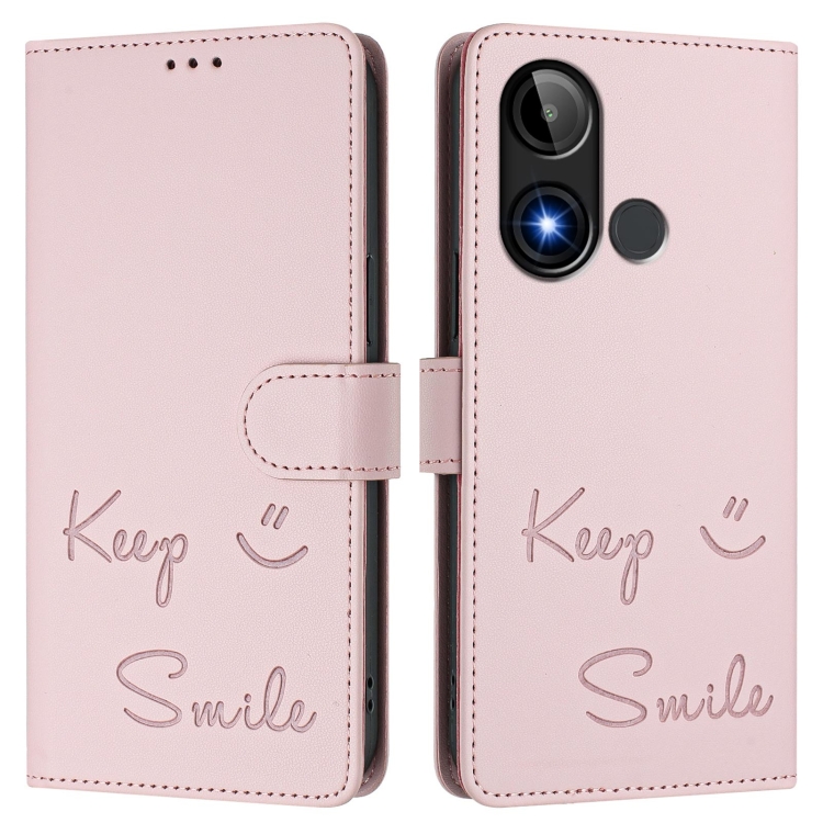 Funda de Cuero RFID con Relieve Sonriente para Teléfono Blu C9 (Rosa)