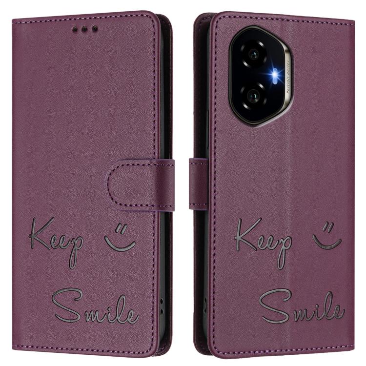 Funda de Cuero Rfid con Relieve Sonriente para Honor 300 5G (Violeta)