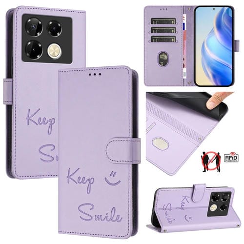 Funda de Cuero Rfid con Relieve Sonriente para Teléfono Infinix Note 40 Pro 5G X6851 (Morado Claro)