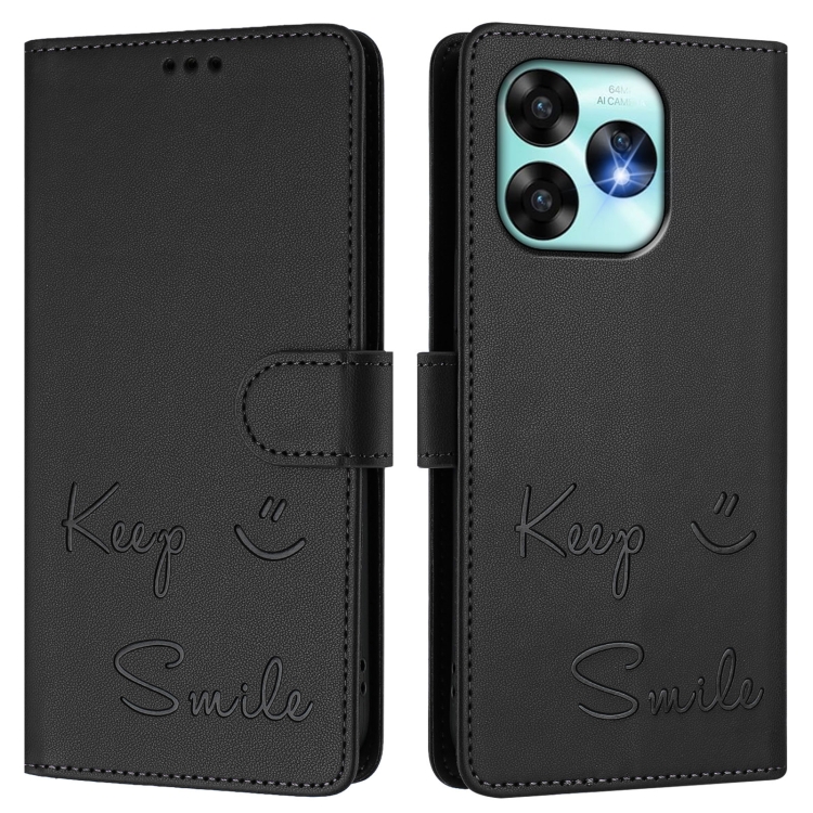 Funda de Cuero Rfid con Relieve Sonriente para Teléfono Umidigi A15/A15C/A15T (Negra)