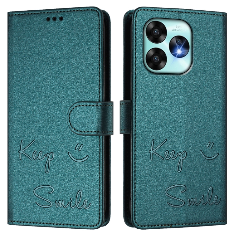 Funda de Cuero Rfid con Relieve Sonriente para Teléfono Umidigi A15/A15C/A15T (Verde Pavo Real)