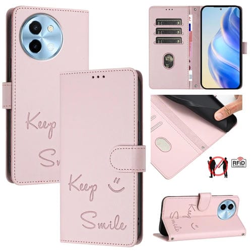 Funda de Cuero Rfid con Relieve Sonriente para Vivo Y38 5G (Rosa)