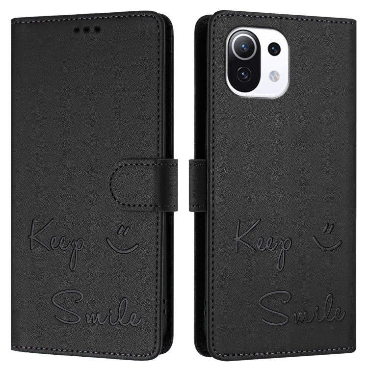 Funda de Cuero Rfid con Relieve Sonriente para Xiaomi Mi 11 Lite 4G/5G (Negra)