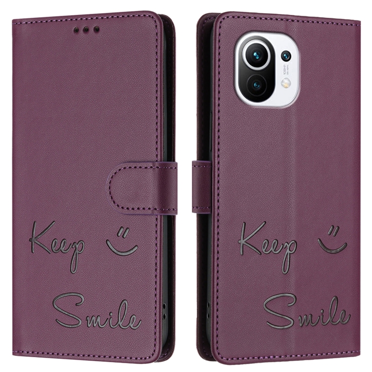 Funda de Cuero Rfid con Relieve Sonriente para Xiaomi Mi 11 (Violeta)