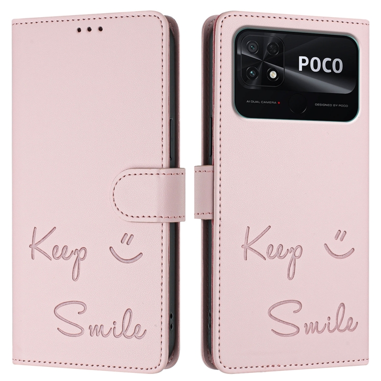 Funda de Cuero Rfid con Relieve Sonriente para Xiaomi Poco C40 (Rosa)