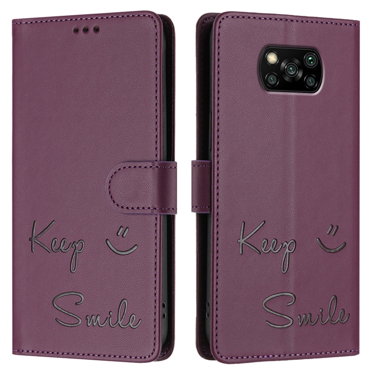 Funda de Cuero Rfid con Relieve Sonriente para Xiaomi Poco X3 / X3 Nfc / X3 Pro (Violeta)