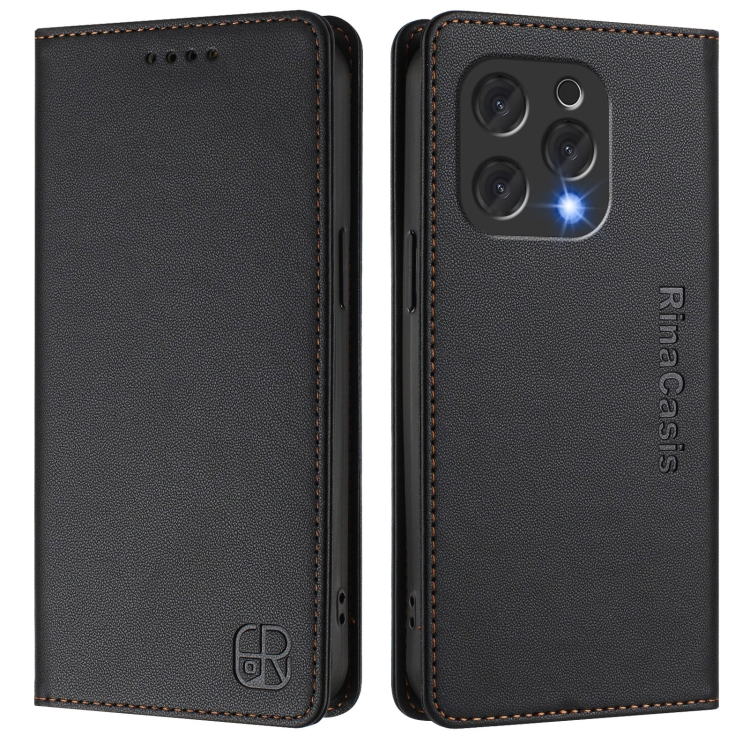 Funda de Cuero Rfid con Succión Magnética y Doble Pliegue para Doogee N55 Plus Rc01 (Negra)