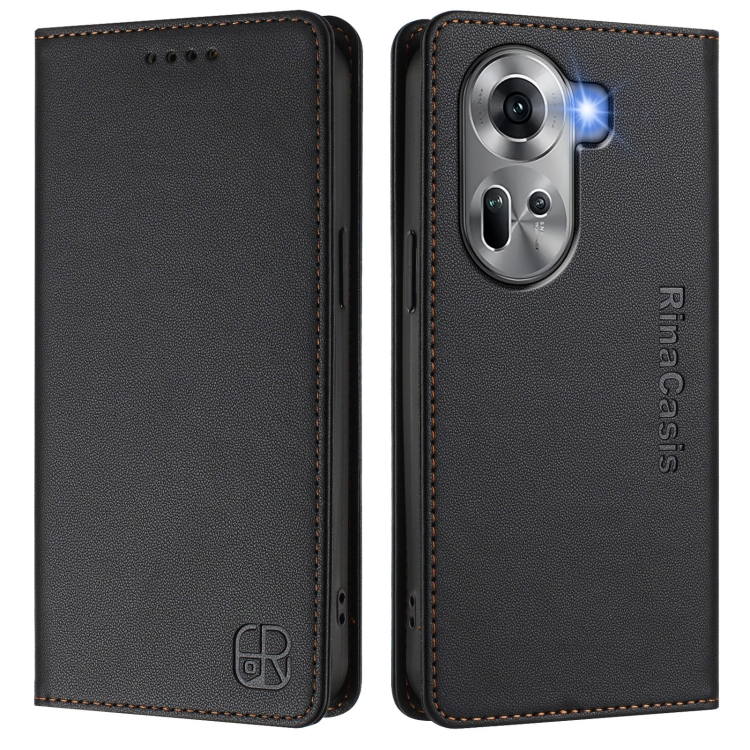 Funda de Cuero con Doble Pliegue y Cierre Magnético Rfid para Oppo Reno11 5G Global Rc01 (Negra)