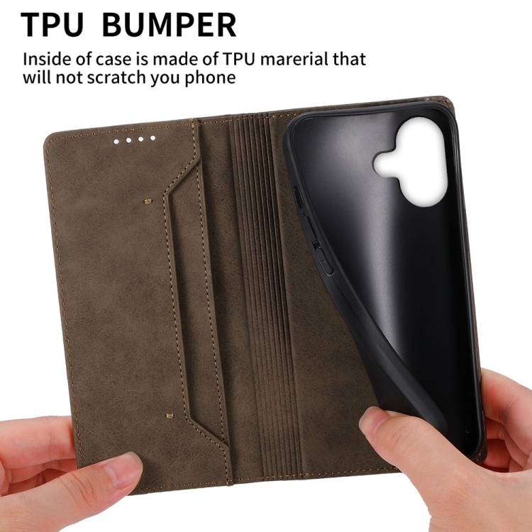 Funda de Cuero iPhone 16 Protección Rfid Magnética (Marrón)