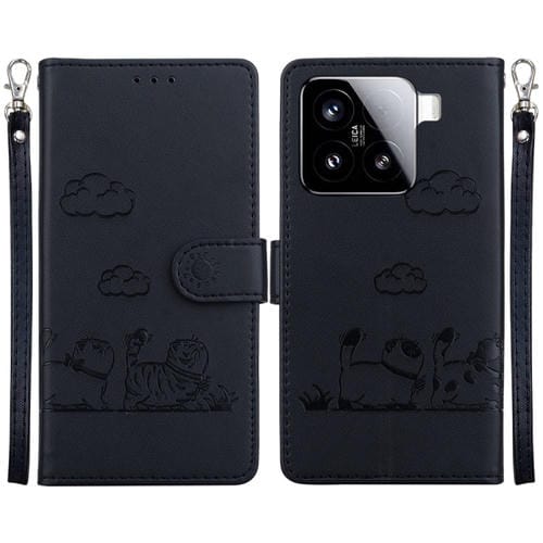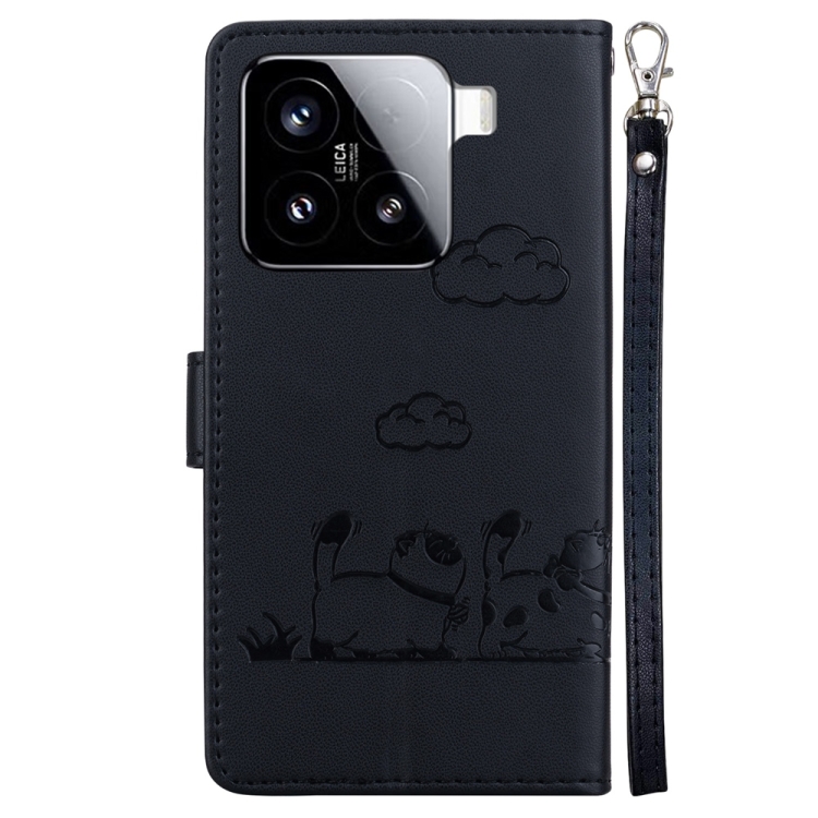 Funda De Cuero Rfid Con Diseño De Gatos Para Xiaomi 15 (Negra)
