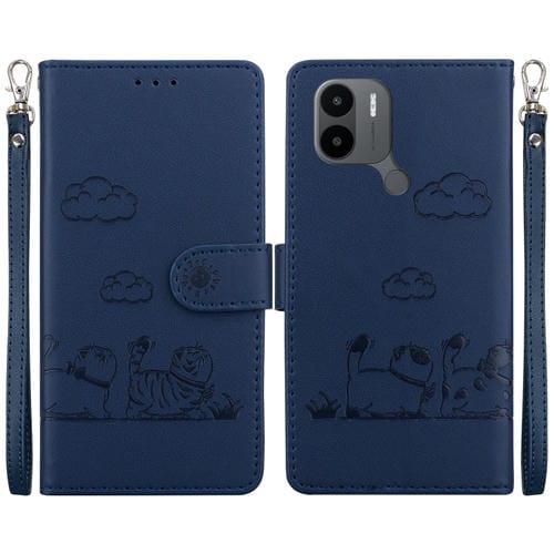 Funda de Cuero Rfid con Diseño de Gatos para Xiaomi Poco C50 (Azul)