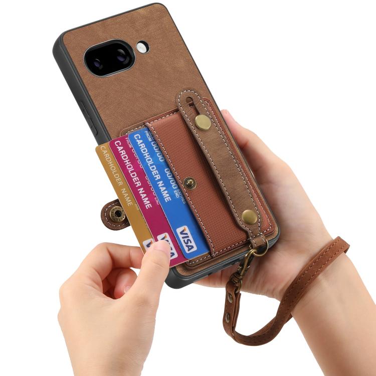 Funda de Cuero Tipo Billetera con Correa Cruzada para Google Pixel 9A (Marrón)