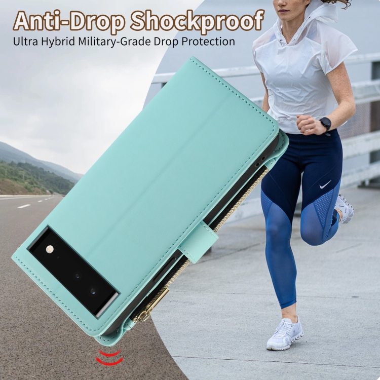 Funda de Cuero Tipo Billetera con Cremallera Rombal para Google Pixel 6 (Cian)