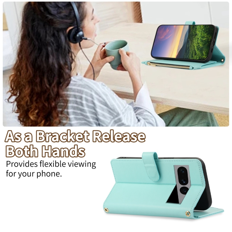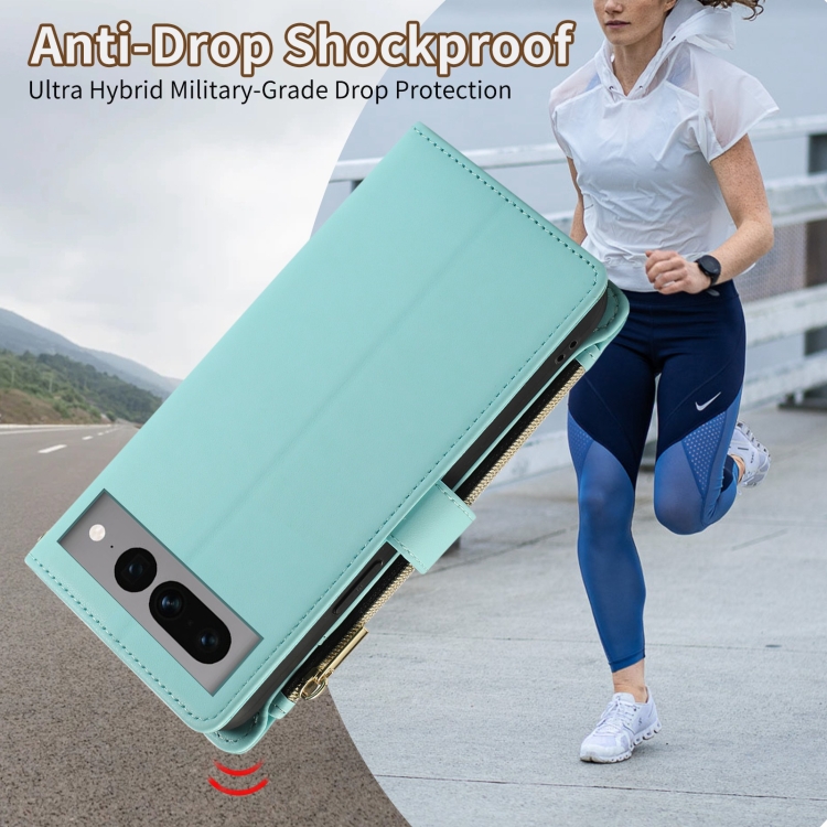 Funda de Cuero Tipo Billetera con Cremallera Rombal para Google Pixel 7 Pro (Cian)