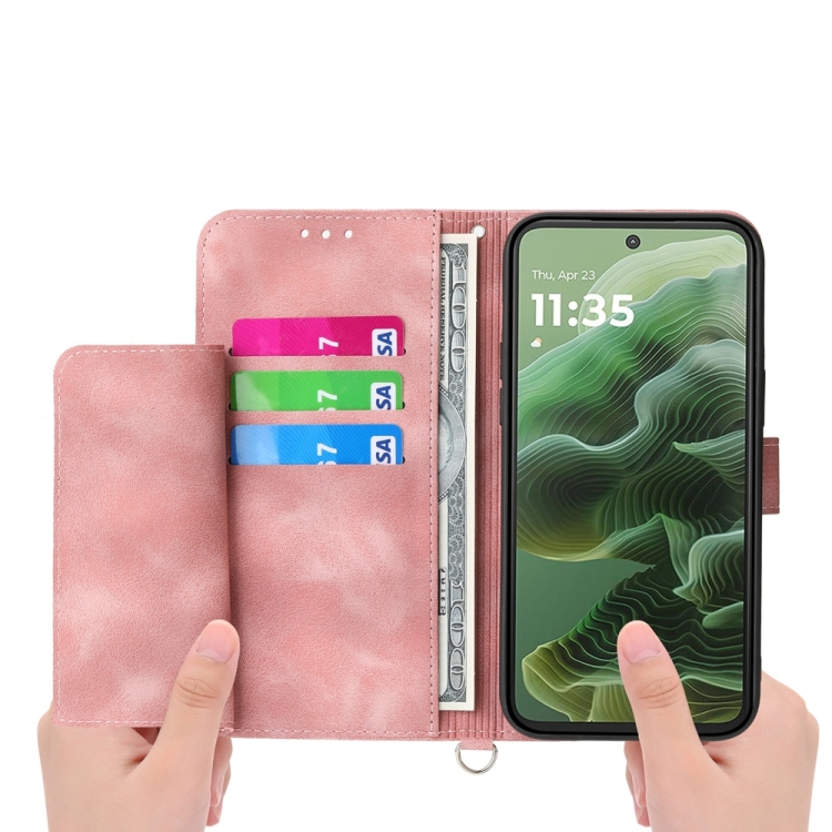 Funda de Cuero Tipo Billetera para Motorola Moto G35 con Diseño Flores en Relieve (Rosa)