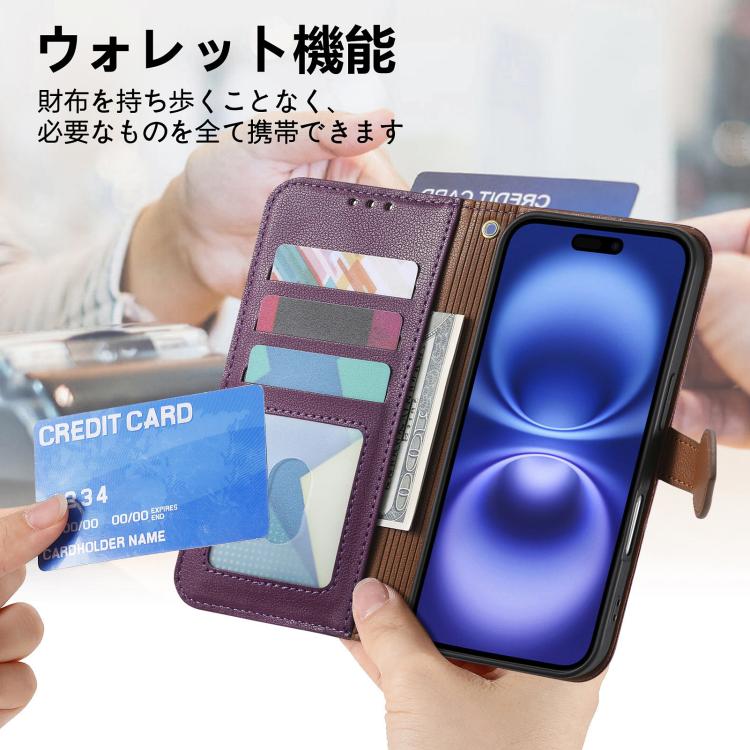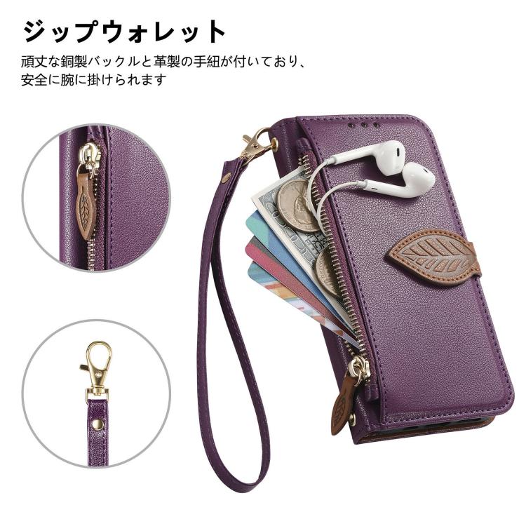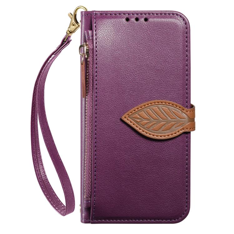 Funda de cuero tipo billetera con hebilla de hoja y cremallera para iPhone 17 (morado)