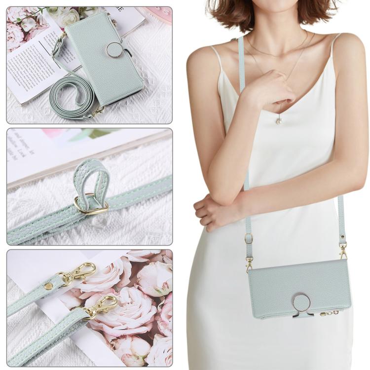 Funda de cuero tipo billetera con hebilla redonda y cremallera de 164,8 mm para Redmi Note 14 4G con correa cruzada (azul cielo)
