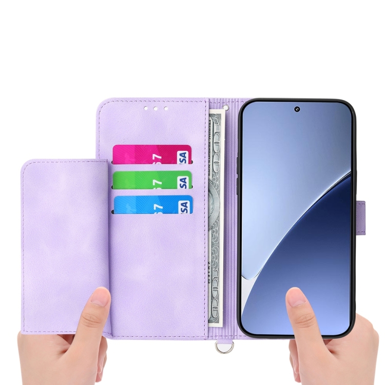 Funda De Cuero Tipo Billetera Con Relieve De Flores Y Tacto De Piel Para Xiaomi 15 (Morado)