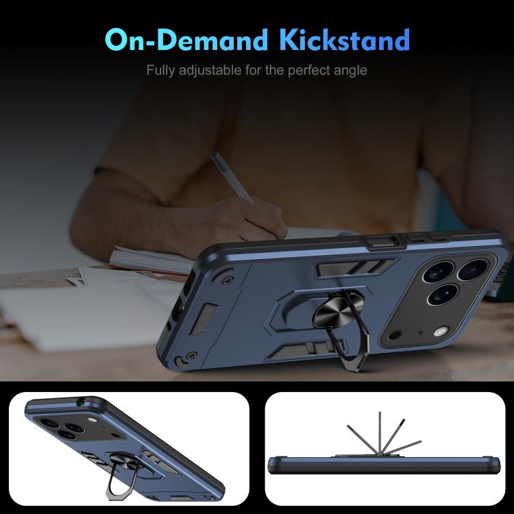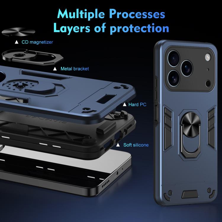 Funda de metal con anillo a prueba de golpes para iPhone 17 Pro (azul)