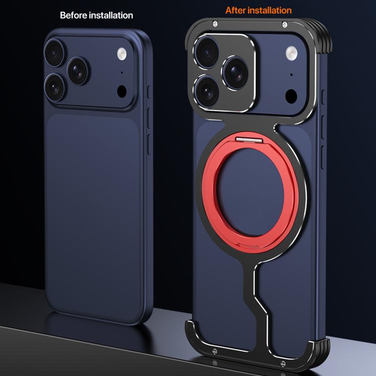 Funda de metal con disipación de calor y soporte magnético MagSafe sin marco para iPhone 17 Pro (plateado y rojo)