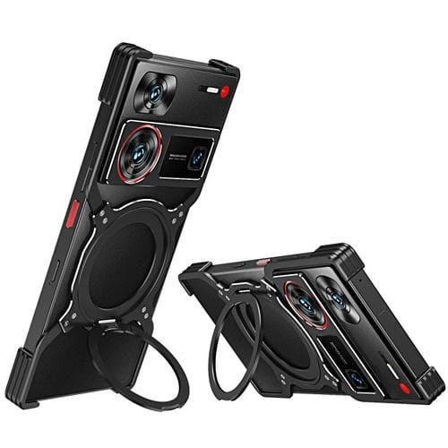 Funda Metal para Teléfono ZTE Nubia Z60 Ultra con Soporte Magsafe y Brazo Mecánico (Negro y Plateado)