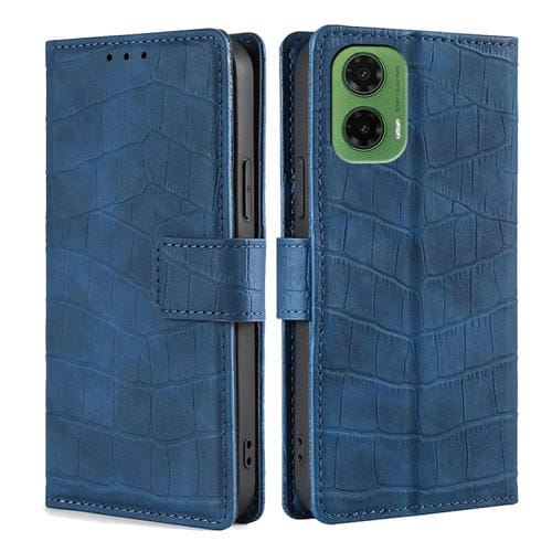 Funda de Piel para Motorola Moto G35 5G con Cierre Magnético y Diseño de Cocodrilo (Azul)