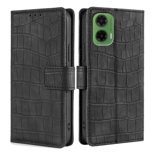 Funda de Piel con Cierre Magnético para Motorola Moto G35 5G (Negra) Diseño Cocodrilo