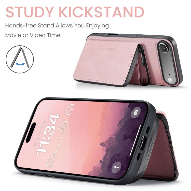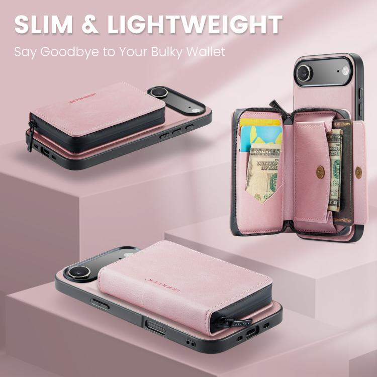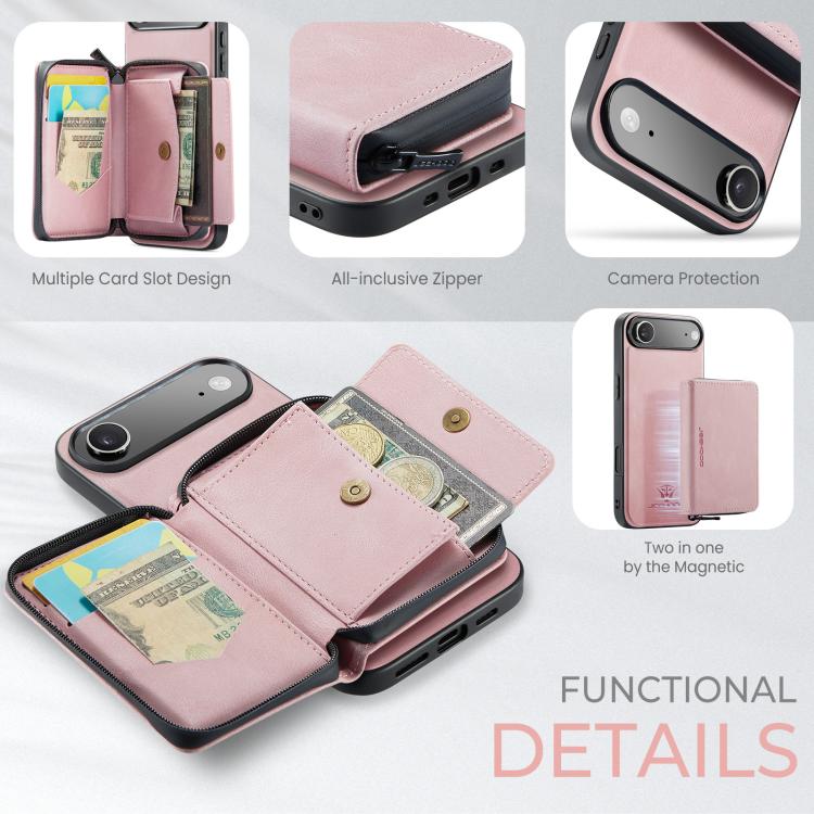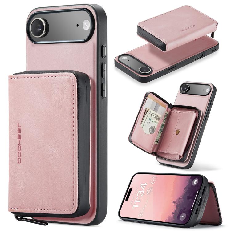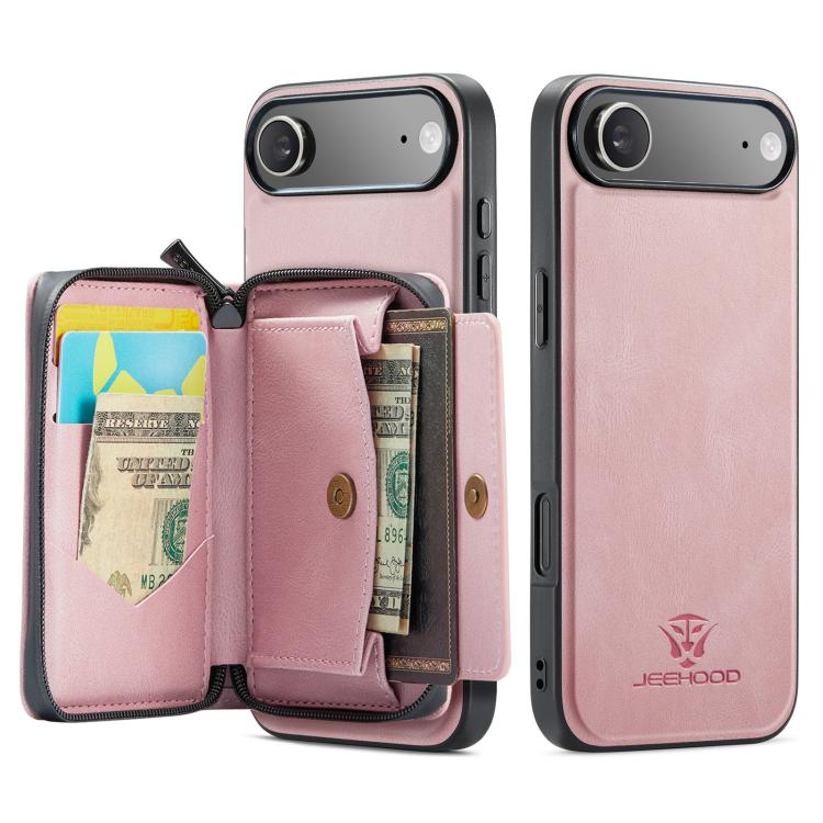 Funda de piel con cremallera magnética JEEHOOD J02 para iPhone Air (rosa)