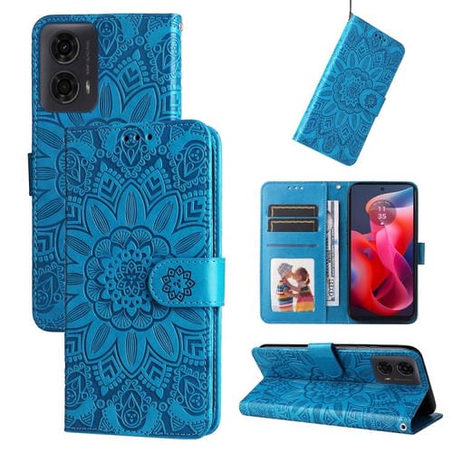 Funda de Piel Motorola Moto G04 G04S G24 E14 con Diseño de Girasol en Relieve (Azul)