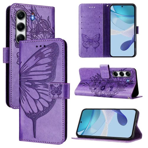 Funda de Piel para Tecno Camon 40 Pro 4G con Diseño de Mariposa en Relieve (Morado Claro)