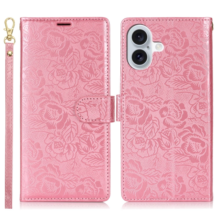 Funda de Piel para iPhone 16 Estampado Flores de Peonía (Rosa)