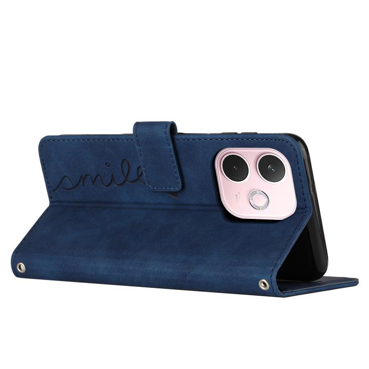 Funda de Piel con Relieve de Corazón y Cordón Largo para Oppo A5 Pro 5G (Azul)