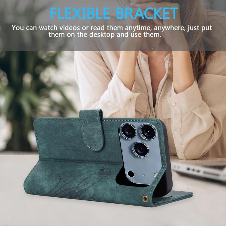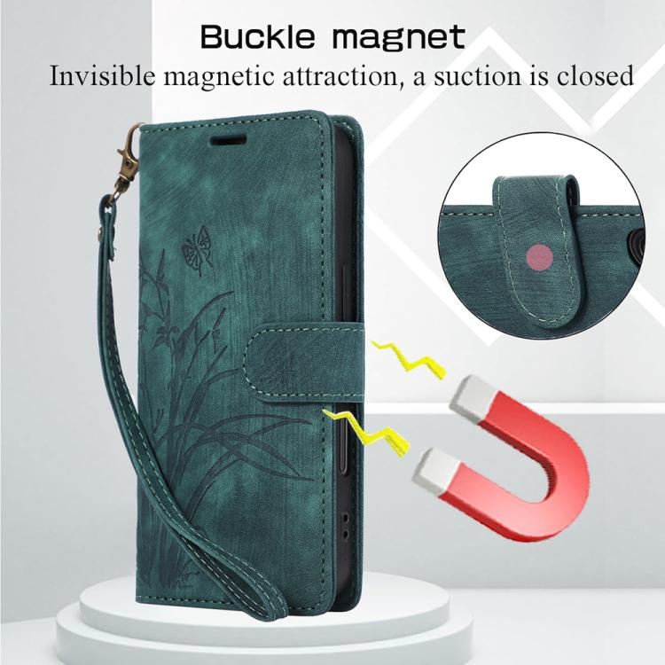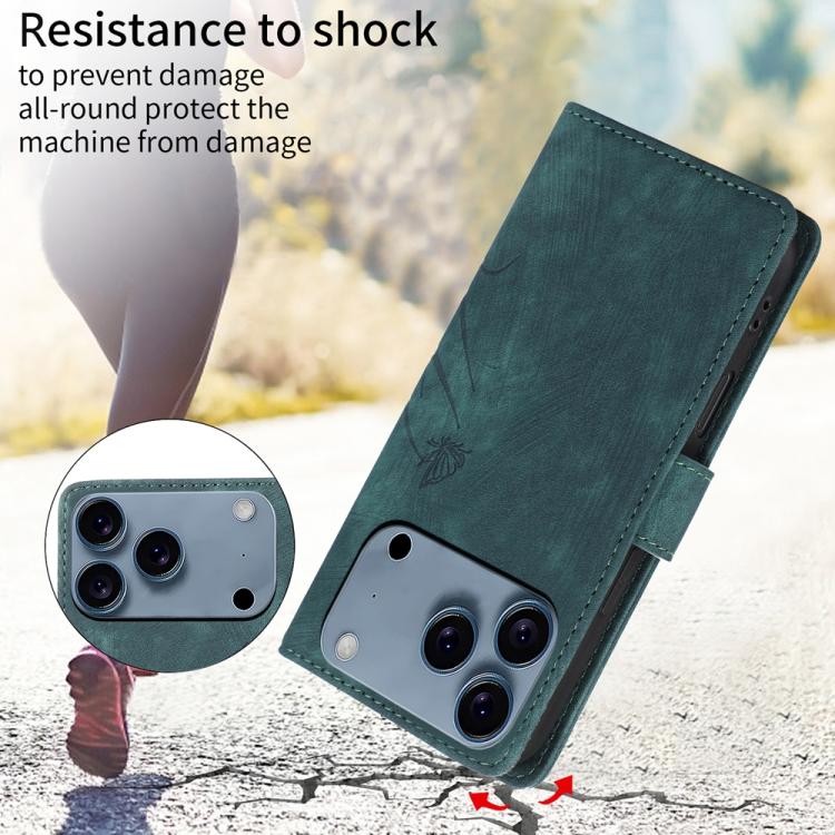 Funda de piel con relieve de mariposa y orquídea para iPhone 17 Pro (verde)