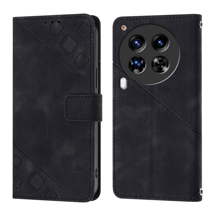 Funda de Piel con Relieve para Teléfono Tecno Camon 30 Premier 5G (Negra)
