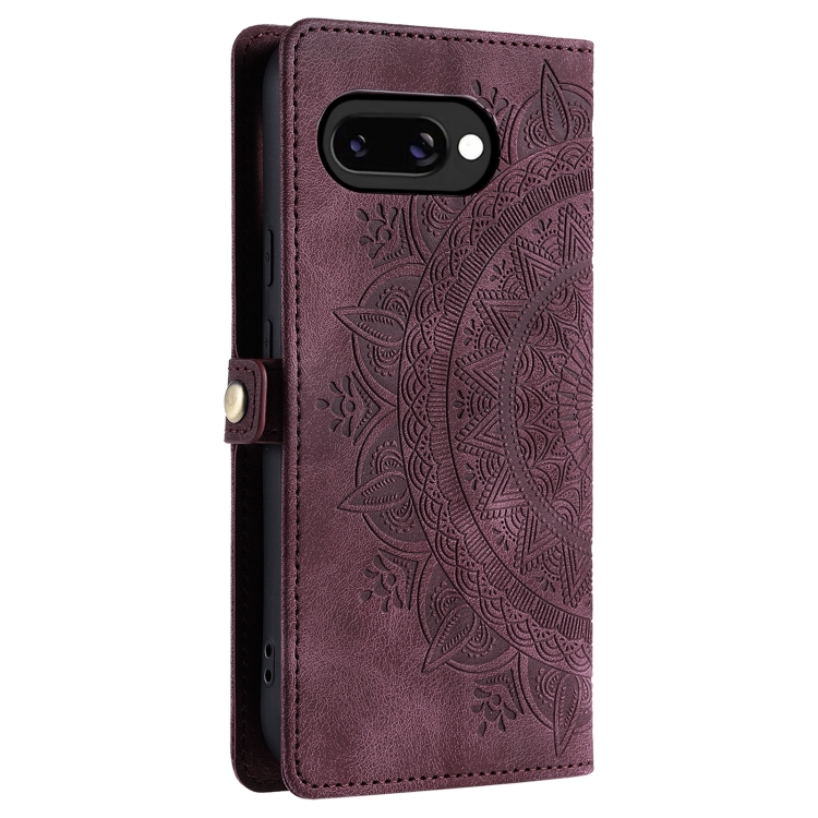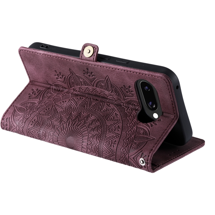 Funda de Piel con Relieve Totem para Google Pixel 9A (Rojo Vino)