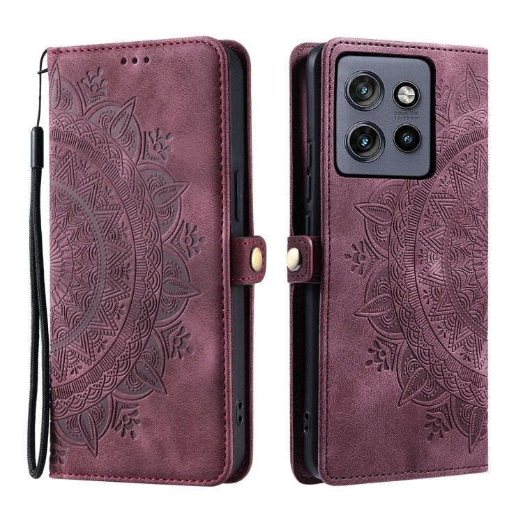 Funda de Piel con Relieve Totem para Motorola Edge 50 Neo (Rojo Vino)