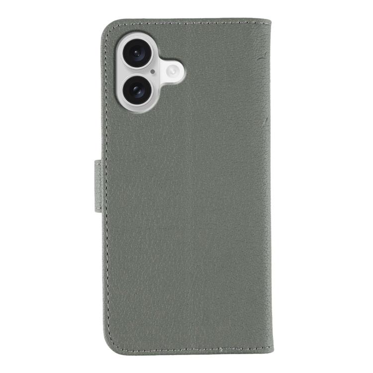 Funda de piel con textura de lichi y diseño de plumas para iPhone 17 (gris)