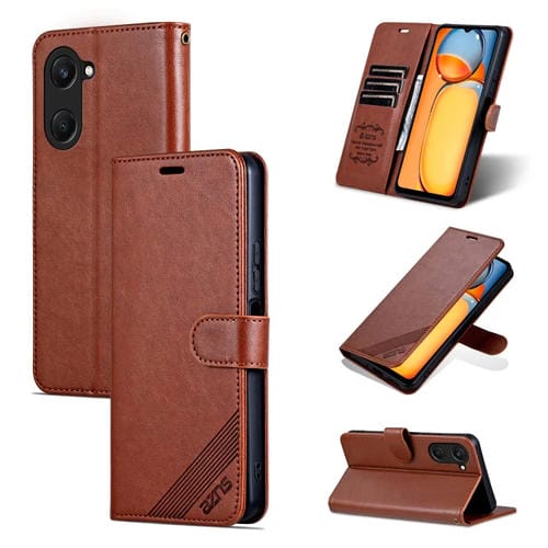 Funda de Piel de Oveja con Tapa Azns para Vivo Y37/Y37M/Y36T 5G (Marrón)