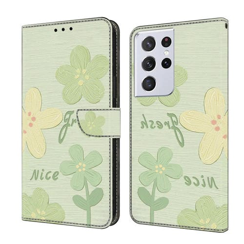 Funda para Teléfono Samsung Galaxy S21 Ultra 5G de Piel Pintada con Flores Frescas