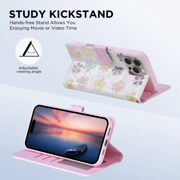 Funda de Piel Rfid para iPhone 16 Pro con Pintura Bronceada (Flor Floreciente)