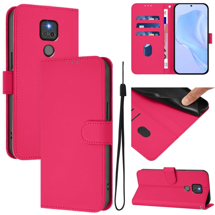 Funda de Piel Sintética con Cordón para Motorola Moto G Play 2021 (Rosa y Rojo)