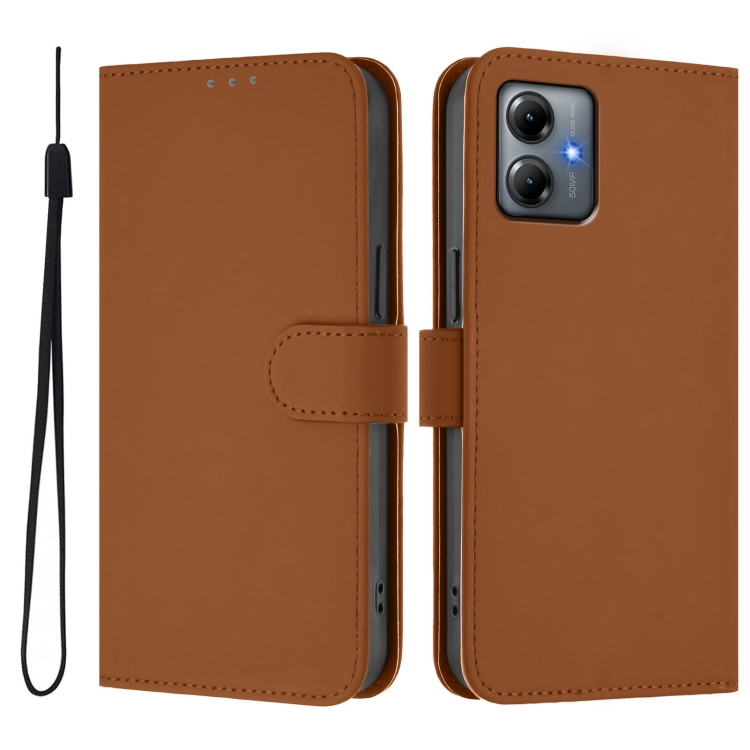 Funda de Piel Sintética con Cordón para Motorola Moto G14 4G (Marrón)