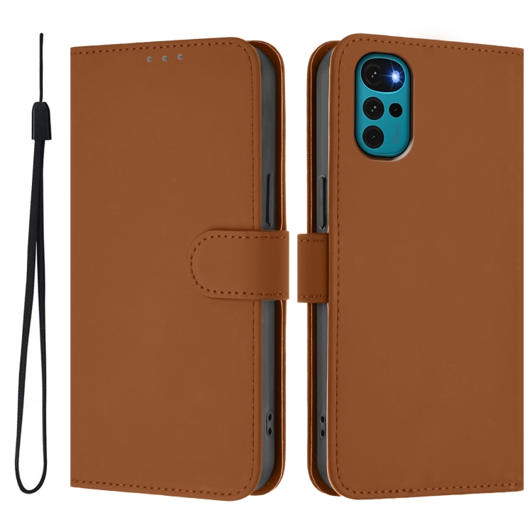 Funda de Piel Sintética con Cordón para Motorola Moto G22 4G y E32S (Marrón)