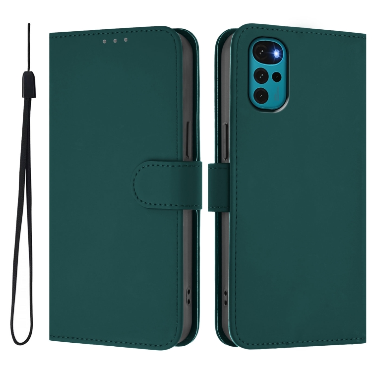 Funda Piel Sintética con Cordón para Motorola Moto G22 4G/E32S (Verde Oscuro)
