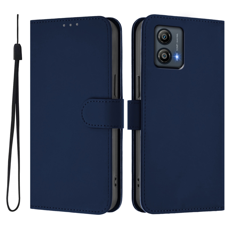 Funda de Piel Sintética con Cordón para Motorola Moto G53 5G y G13 4G (Azul Marino)