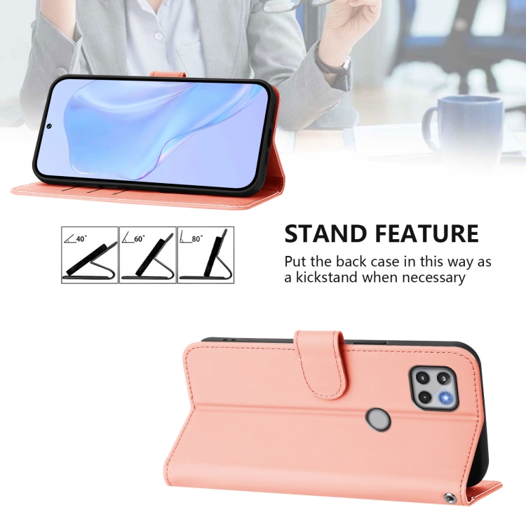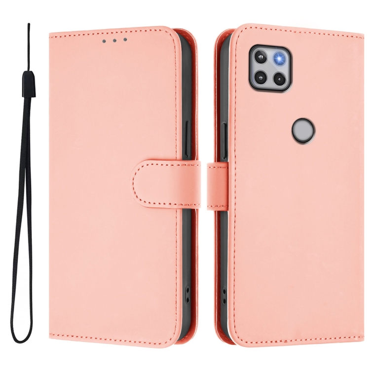 Funda de Piel Sintética con Cordón para Motorola One 5G Ace (Rosa)