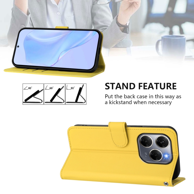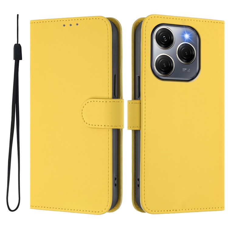 Funda de Piel para Tecno Spark 20 Pro 5G con Textura y Cordón (Amarillo Limón)