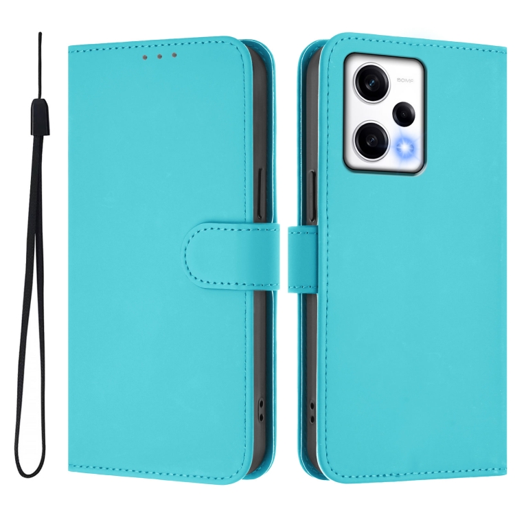 Funda de Piel Sintética con Cordón para Teléfono Xiaomi Poco X5 Pro (Azul Lago)