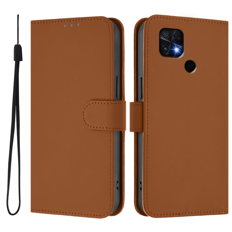 Funda de Piel Sintética con Cordón para Xiaomi Poco C40 (Marrón)
