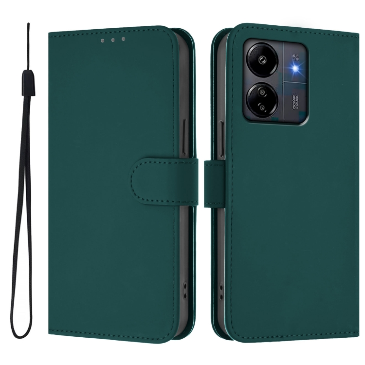 Funda de Piel Sintética con Cordón para Xiaomi Poco C6 Global / M6 5G Global (Verde Oscuro)